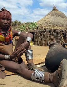 Drive deep into tribal lands; photograph Mursi lip‑plates at sunrise.